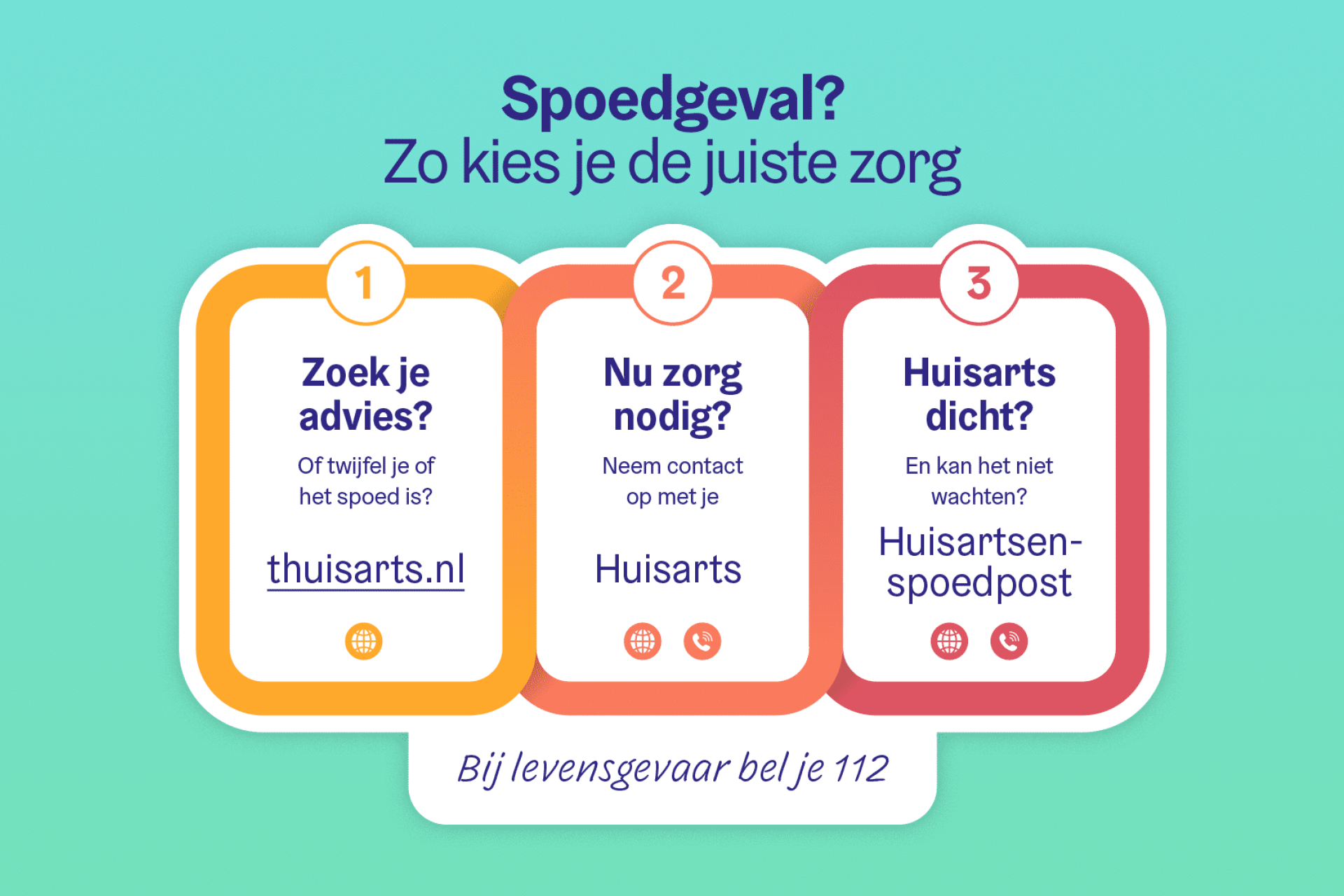 Wanneer de huisartsenpraktijk dicht is, kun je de huisartsen spoedpost bellen, maar let op: De huisartsen spoedpost bel je in de avonden, nachten, weekenden en tijdens feestdagen alleen wanneer je dringend medische zorg nodig hebt. Er is sprake van spoed. Is er geen sprake van spoed? Dan wacht je tot de volgende werkdag en bel je je eigen huisarts. Wil je meer informatie over wanneer je de huisartsenpraktijk belt en wanneer je de huisartsen spoedpost belt? Klik dan op onderstaande link.